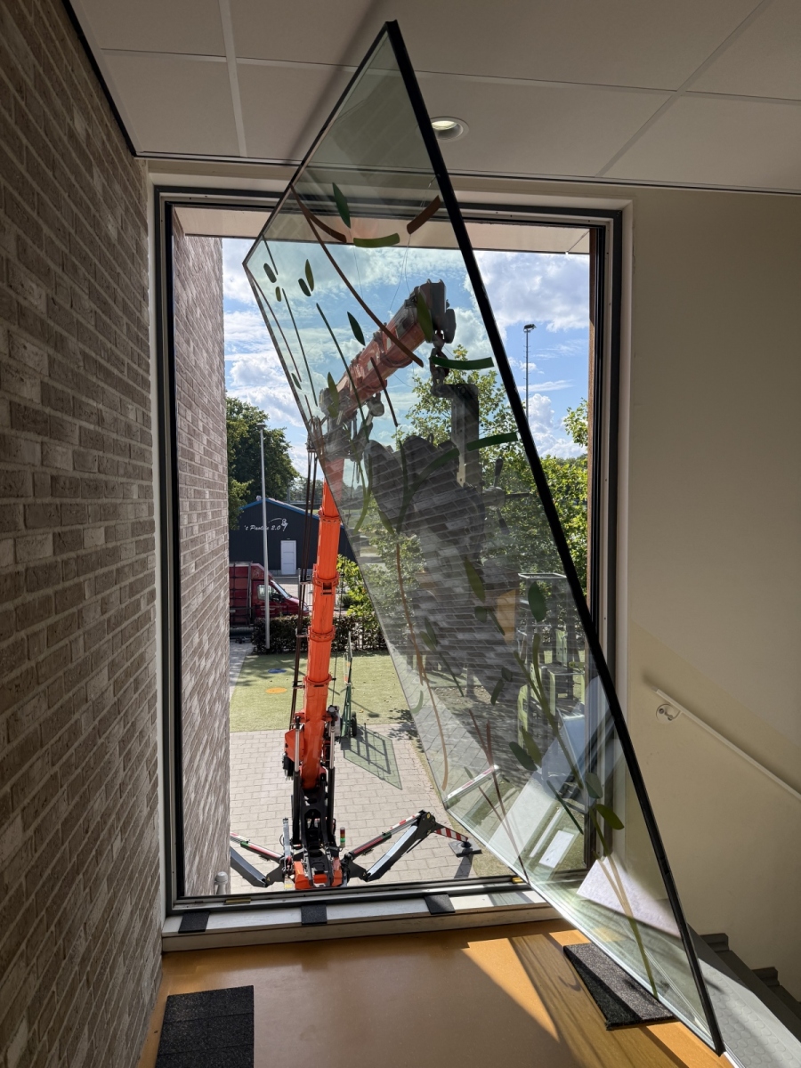 Project gelaagde ruiten plaatsen van 300 kg in monumentaal pand.